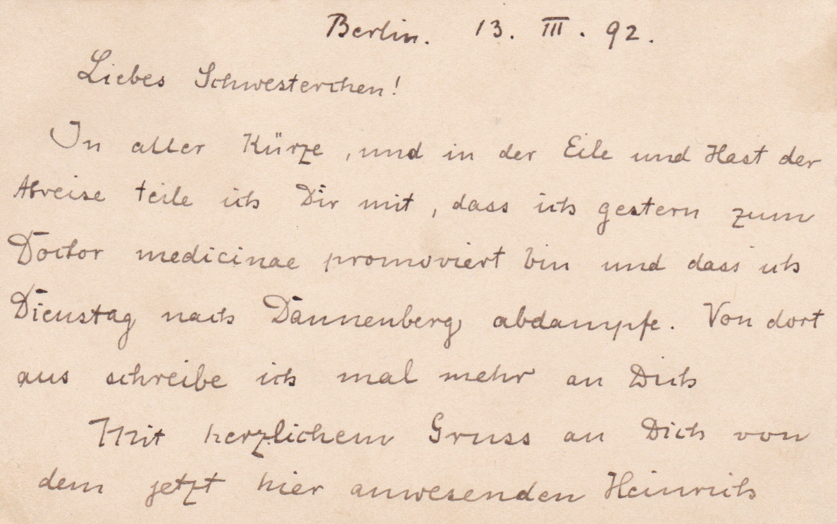 1892-03-12 doctorate in Berlin (Über einen Fall von Mediastinalsarcom)
