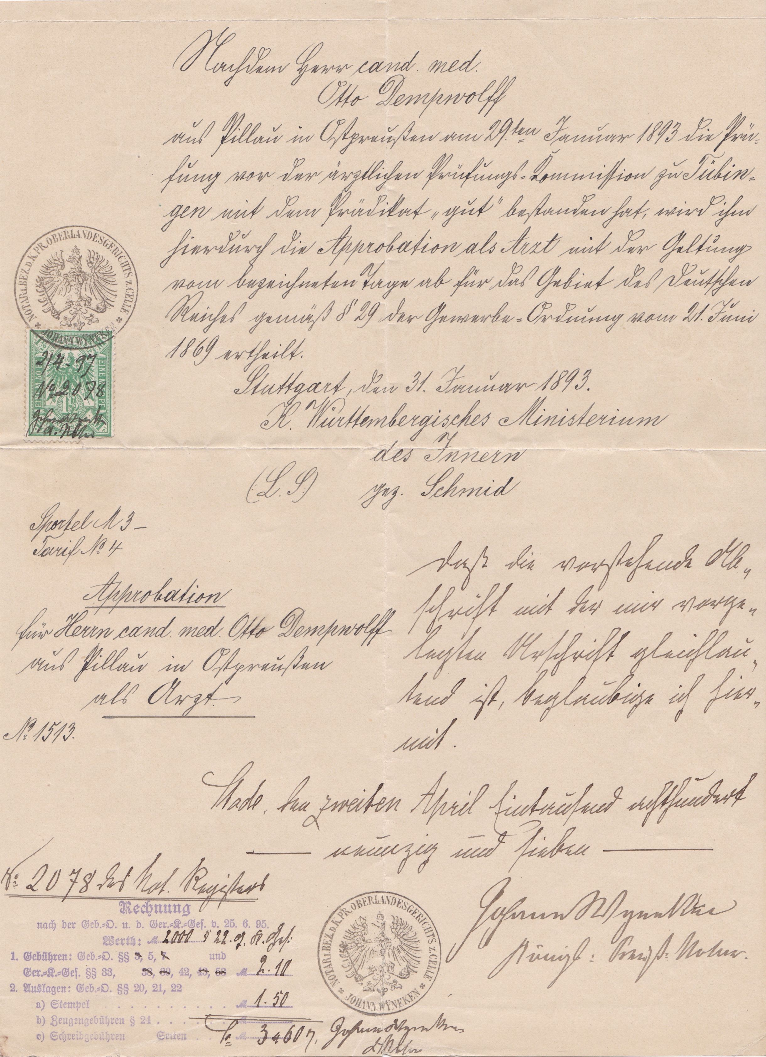 1893--1894 military service, partly as a "Unterarzt" (like: junior doctor) in München, Memel, Tilsit and Hamburg
